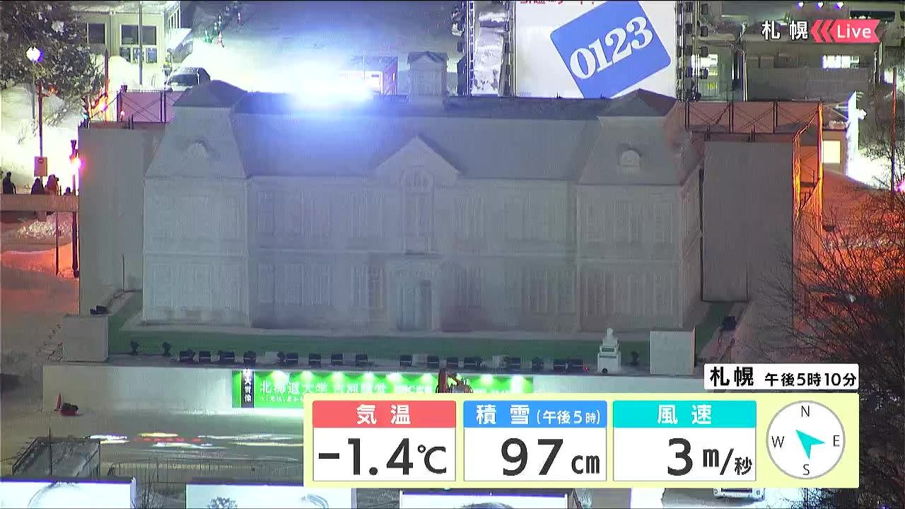 あす4日(水)から「さっぽろ雪まつり」が始まります。大通7丁目HBC広場の大雪像は「北海道大学 古河講堂」です。