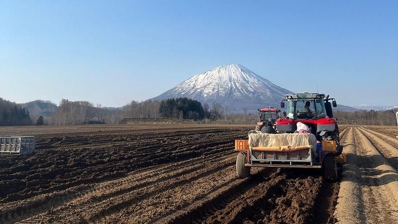 案内された真狩村の農園は、「蝦夷富士」羊蹄山をのぞむ広々東京ドーム7個分の大きさ!