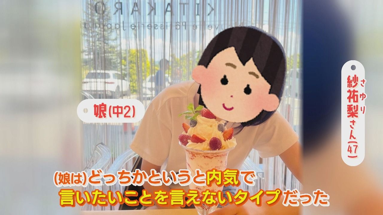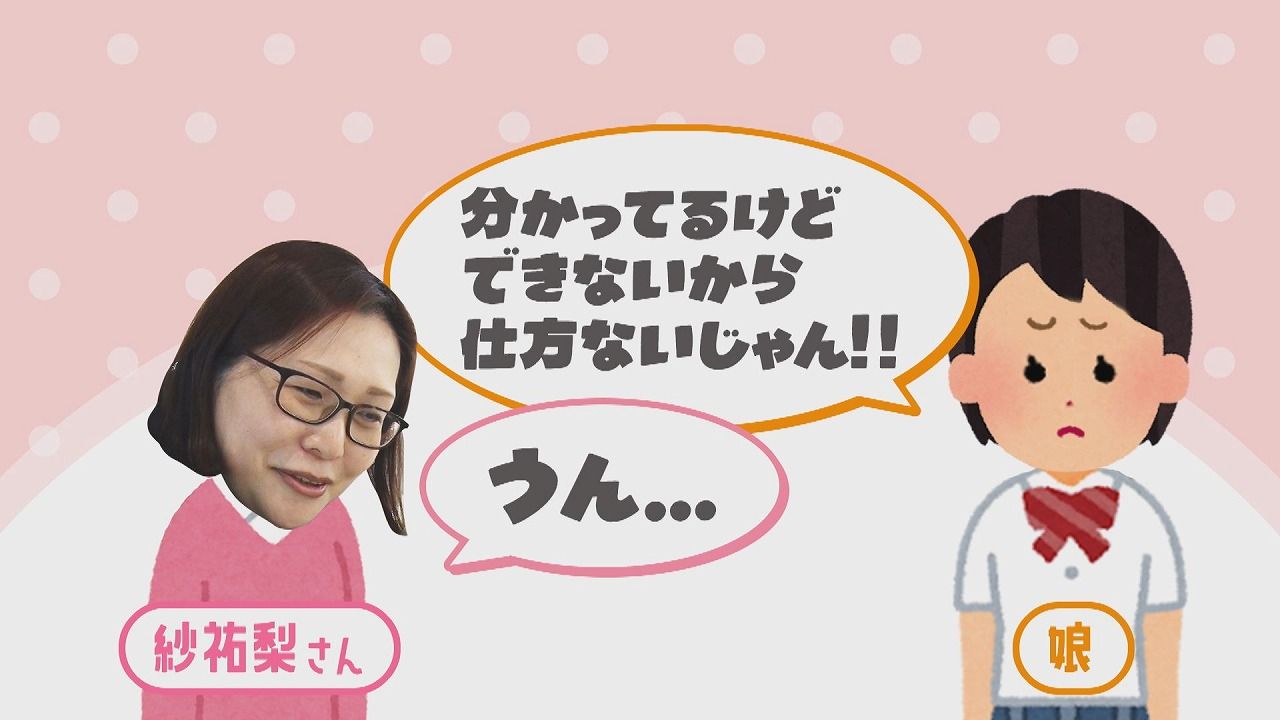 番組スタッフ:「娘さんもお母さんからの言葉を素直にうけとる?」紗祐梨さん:「いや、そんなことないです。『それはわかってるけど、でもできないんだから仕方ないじゃないか』みたいな感じで言われたりするので、そのときは静かに『うん』って言って…」