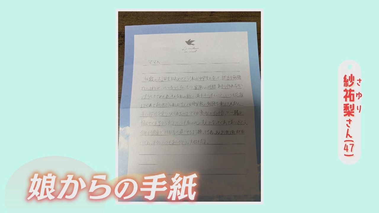 紗祐梨さん:「最近誕生日だったんですけど、誕生日のたびに娘が手紙をくれるんですよ。感動して何回もみて泣きそうになりました」