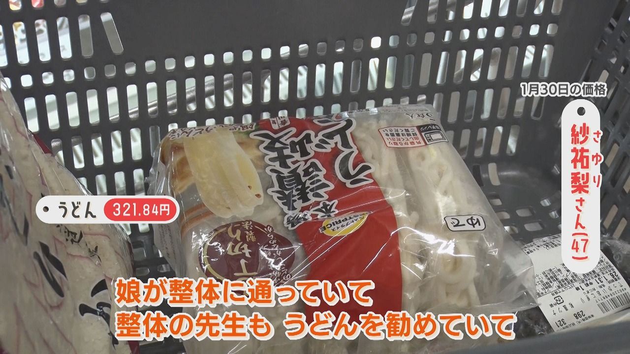 番組スタッフ:「今日の夜ごはんは何をする予定?」紗祐梨さん:「夜ごはんは普通にうどんにしようと思っていて。娘が部活で腰を痛めて整体に通っていたんですけど、体にいいのでうどんを食べるようにいわれて、それからうどんを結構食べる」