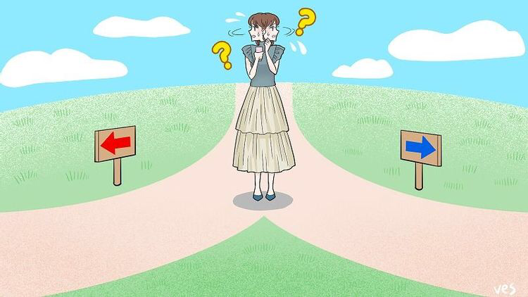 てる子さん)悩みって、やっぱりその人のモヤモヤだから、イラストで見せるってそもそも難しいじゃないですか。たとえば 「物事を決めるのが苦手なんです」 ってお悩み。「どんな絵にすんねん」って思っていたら、このイラストが来て…。