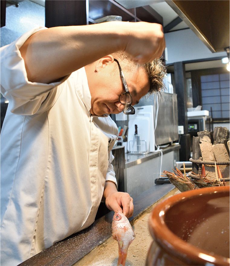 赤々とした炭火に炙られていくにつれ、魚の口から余分な水分が流れ落ちて味わいが凝縮。