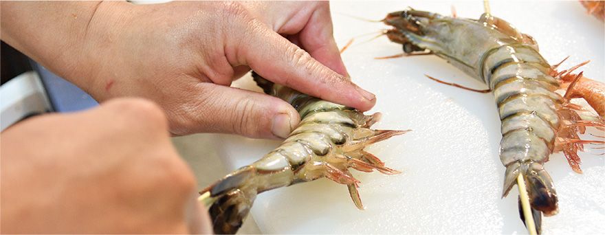 注文が入ってから下処理をし、魚は落下防止に串をエラから背骨に絡めて刺し、