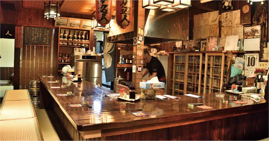 二軒長屋を改装した風情ある建物で、ママお手製の肴やマスターの炉端焼きを振る舞い31年。