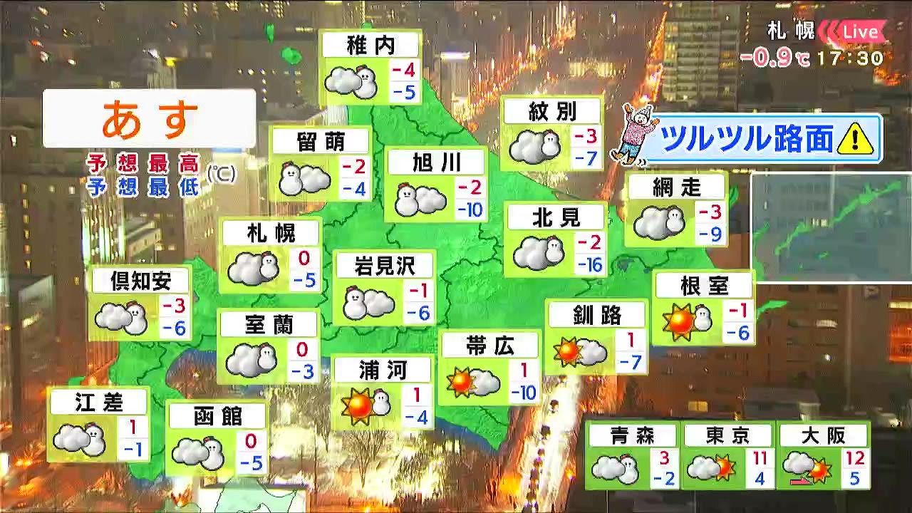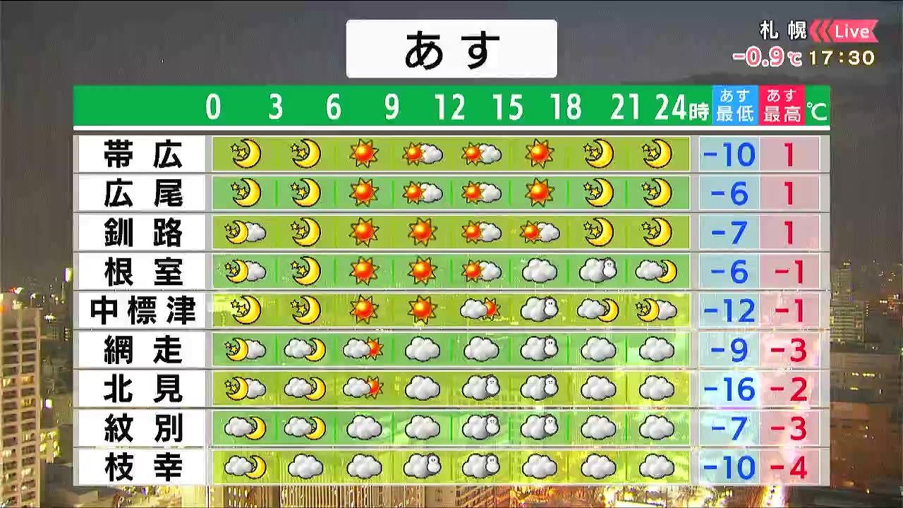 道東は晴れるでしょう。オホーツク海側は昼頃から夕方に雪が降り、寒さが厳しくなりそうです。