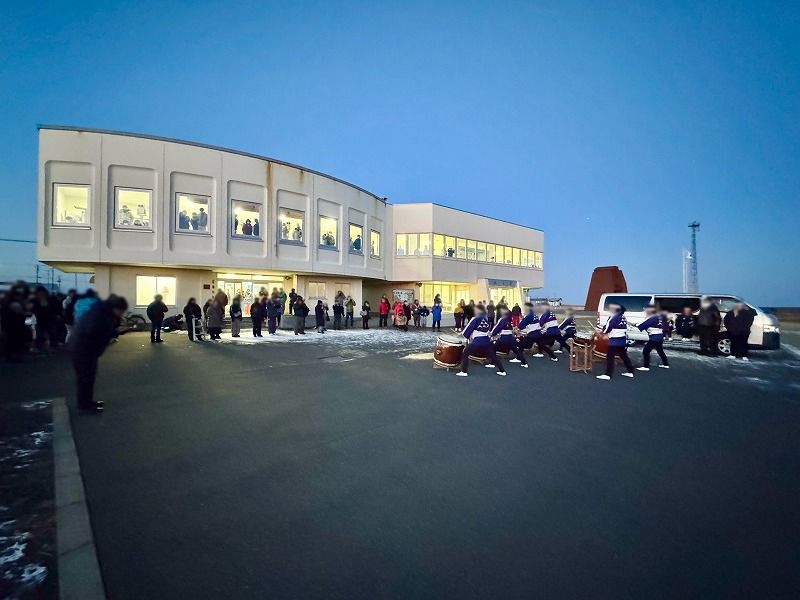 程なくして北方会館前で郷土芸能「ねむろ太鼓」の演奏が始まります。
