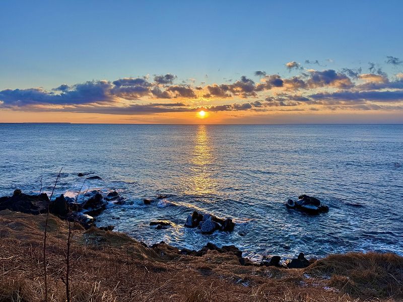 北海道の太平洋側は道内でも比較的雪の量が少なくて冬場でも運転がしやすく、釧路~根室エリアに関しては乾燥した晴れの日が多いおかげで初日の出を狙うならオススメの場所です。日の出時刻にあわせて根室市内の各所と納沙布岬を結ぶ「初日の出詣バス」も運行されていますので、自分の足が無い方でも最東端の初日の出にチャレンジが可能です。