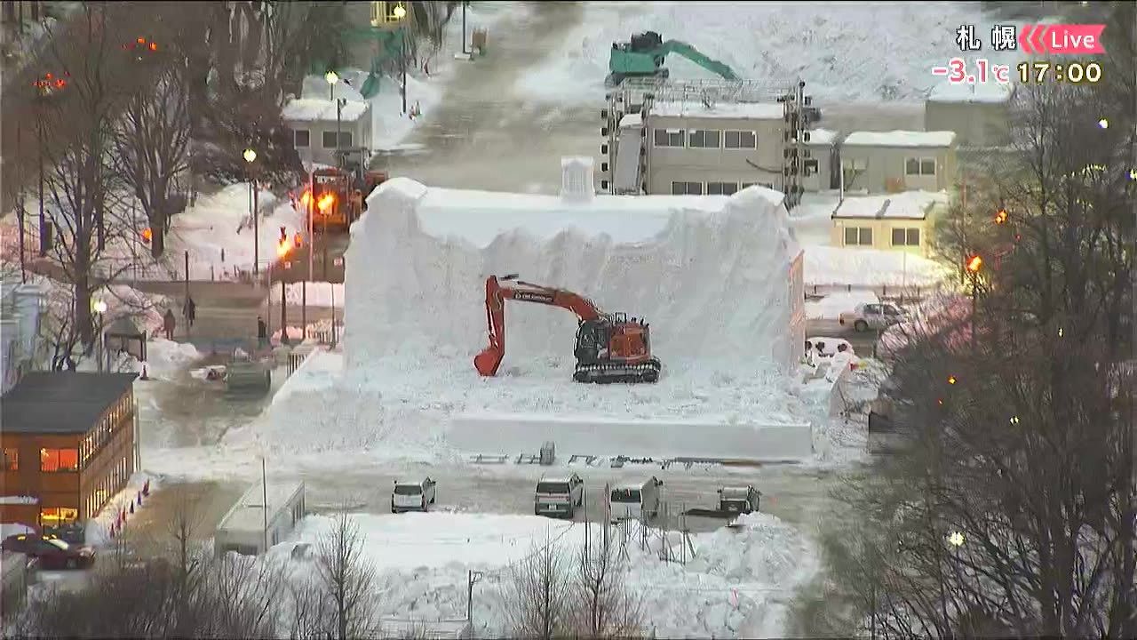 さっぽろ雪まつりが終わり、雪像の前には解体用の重機があります。今しか見られない映像です。雪集めが始まった年明けは雪不足、雪まつりの前には記録的な大雪になりましたが、期間中は大荒れになることはなく、連日多くの人で賑わいました。