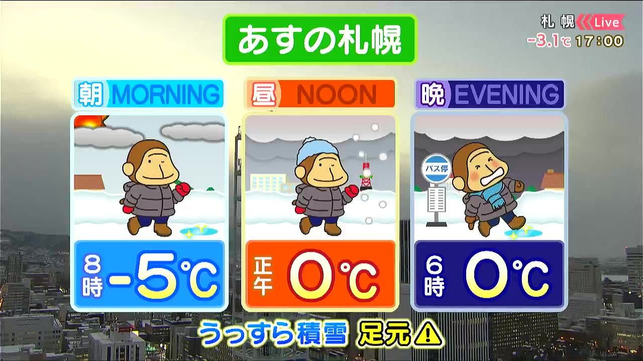 あす13日(金)の札幌です!朝昼晩の天気をもんすけでお伝えします!