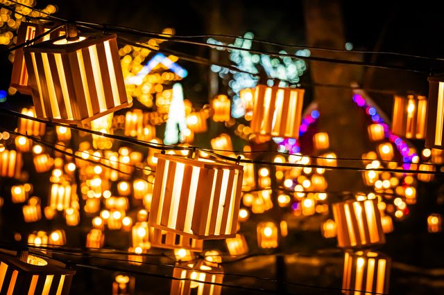 冬の森におよそ15万球の光が散りばめられ、町民の手で作られた、およそ1万個のウッドランタンが、足元からやわらかく道を照らします。