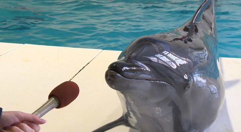 記者の質問に答えたのは、バンドウイルカのロビン(19)です。
