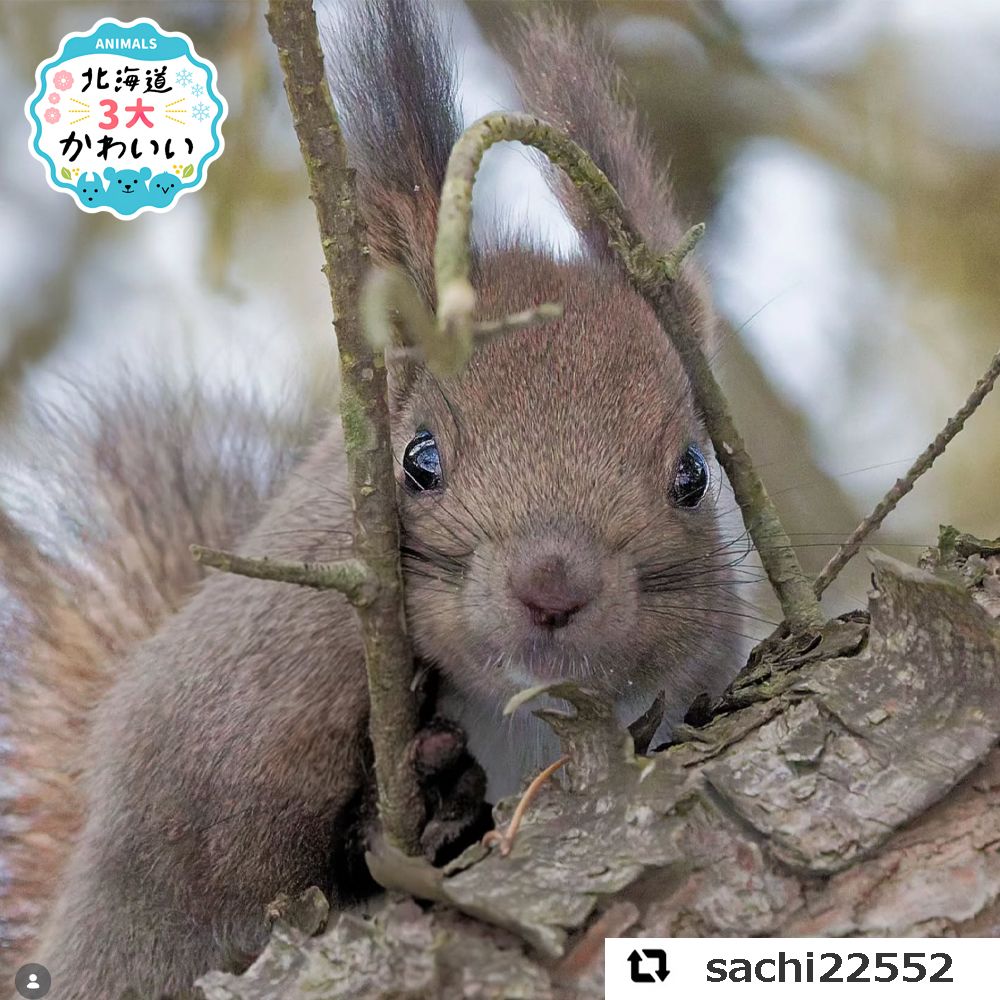 このお写真のキャプションに「野鳥を探して木を見上げたらのぞかれてました、驚かせちゃってごめんね」とありました。