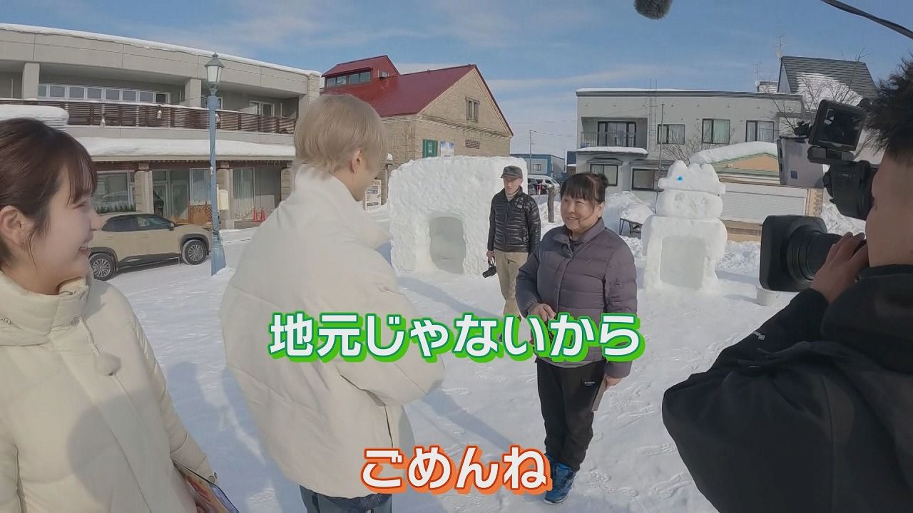 新くん:「とうきび人形を探しているんですけど、ご存知ですか」観光客:「ごめんね。地元じゃないから。道民じゃないです」