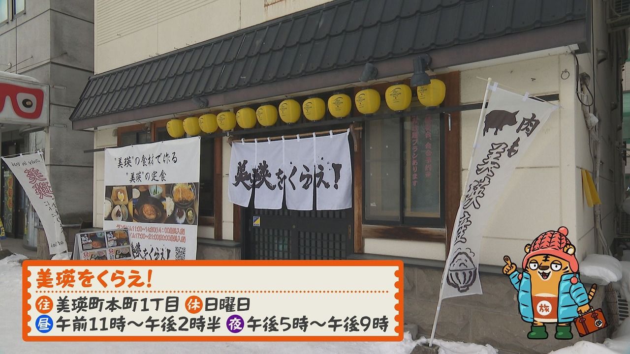 店主:「全部美瑛産の豚を使ってしあげています」新くん:「一生美瑛をくらっていたい」