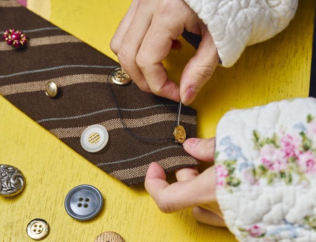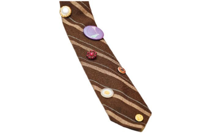ネクタイを机に置き、好きな位置にボタンやリボンなどを置く。
