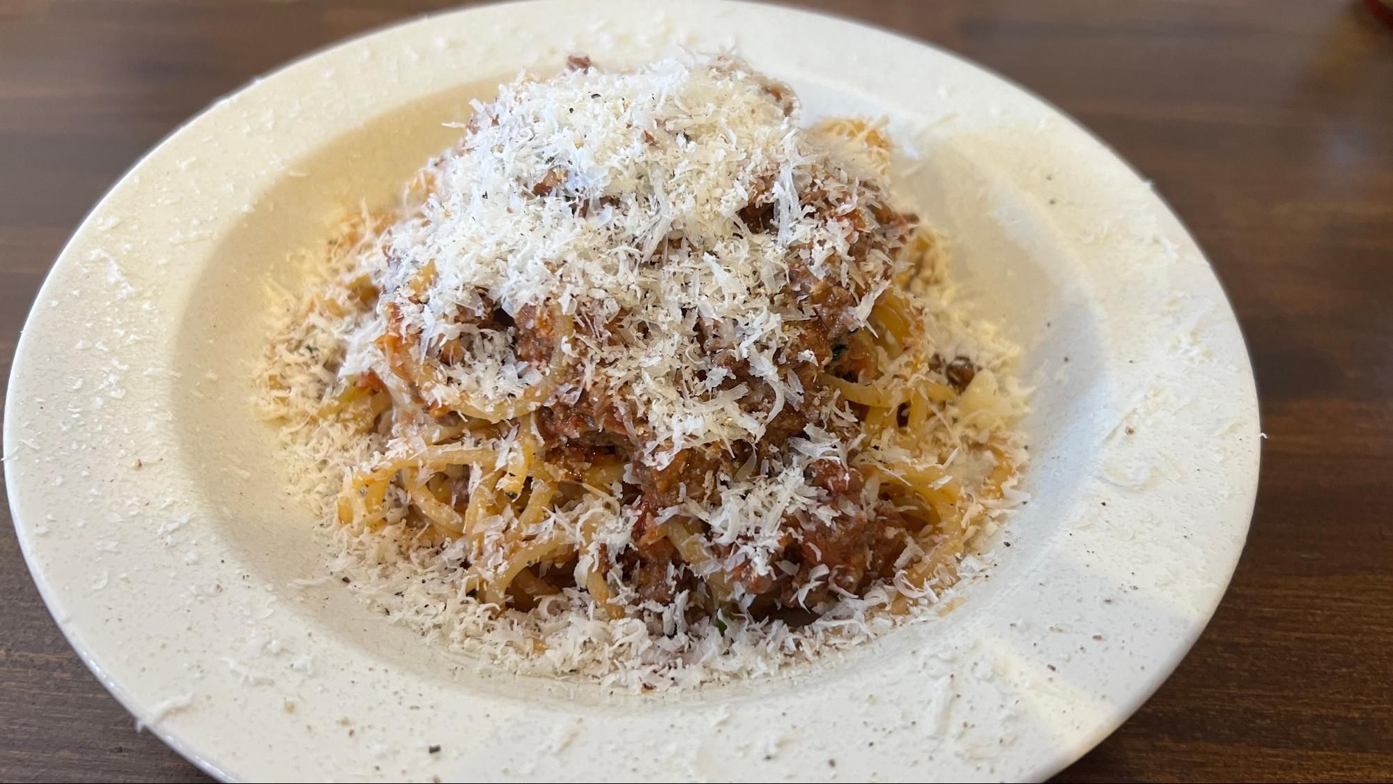粗挽きのお肉を使ったボロネーゼは、うまみたっぷりで、そこにチーズのコクも加わり深みがマシマシ!