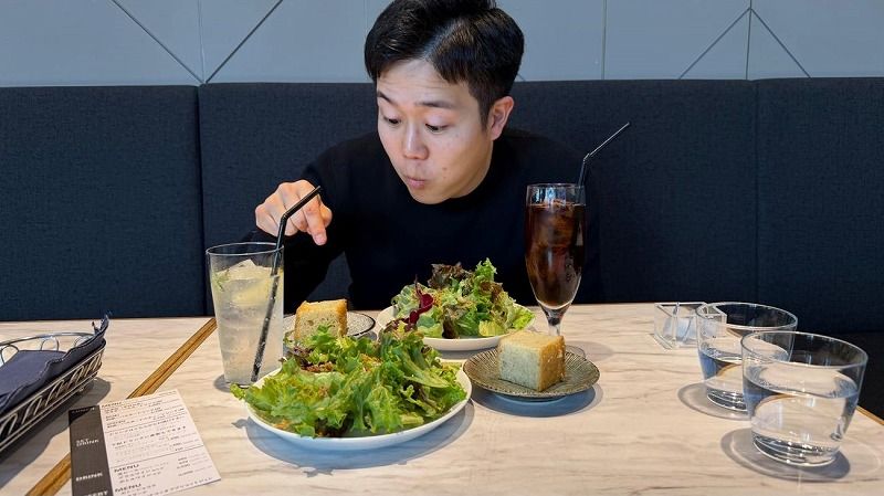 サラダはシンプルながら、香ばしい玉ねぎのフライがトッピングされていて食感もGOOD。