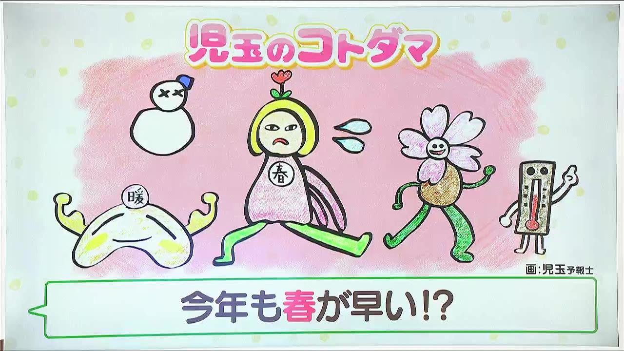 サクラを擬人化した「サクラちゃん」に、暖かい空気の「暖気くん」もいます。ハルさんはいつ呼ばれてもいいように、準備運動をしています。今年もフライング気味に春がやってきそうです。