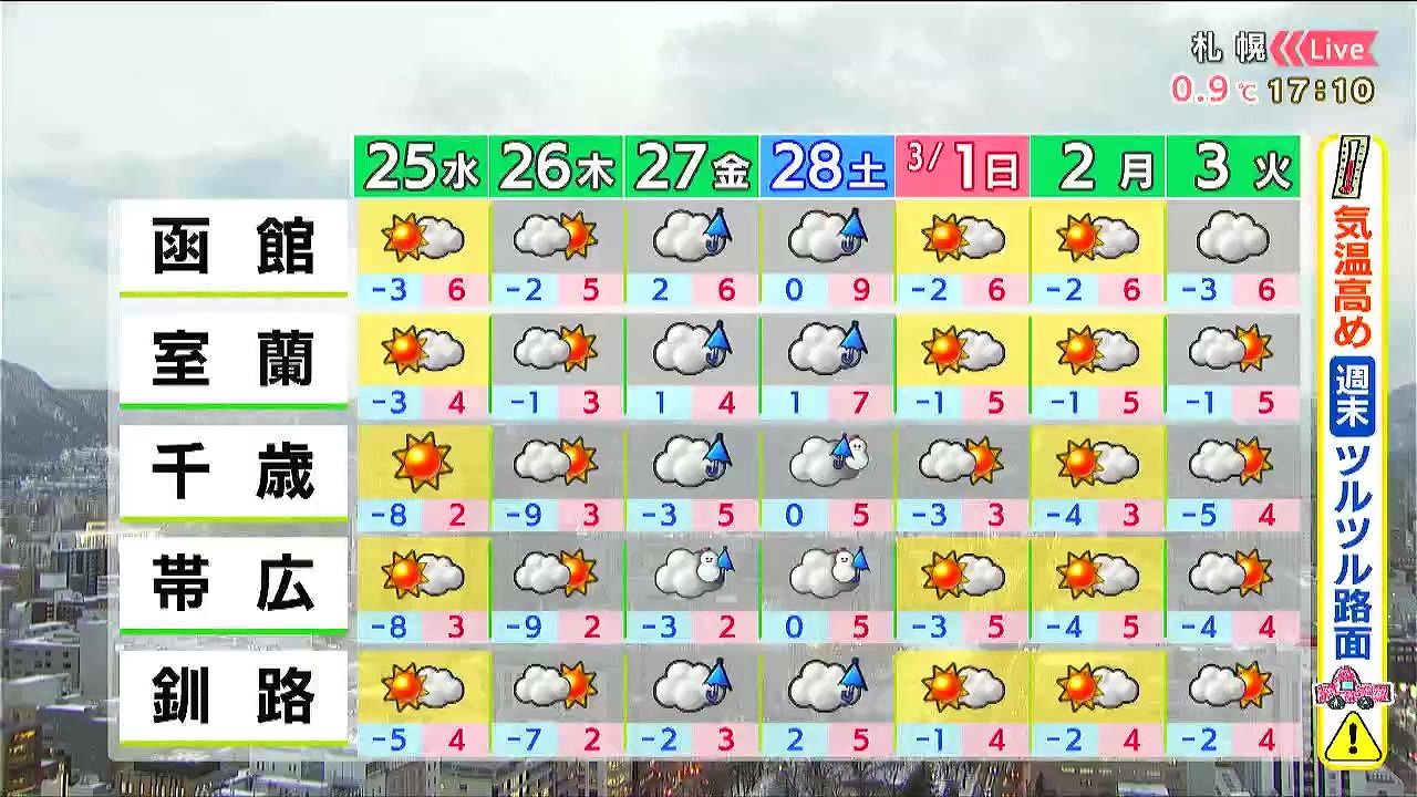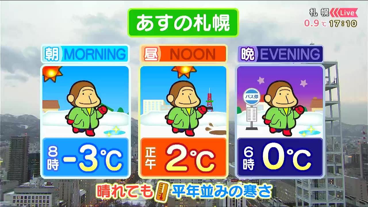 あす25日(水)の札幌です!朝昼晩の天気をもんすけでお伝えします!
