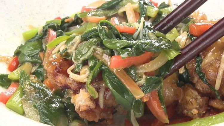 ⑦(6)を揚げた鶏肉の上にかけて完成。