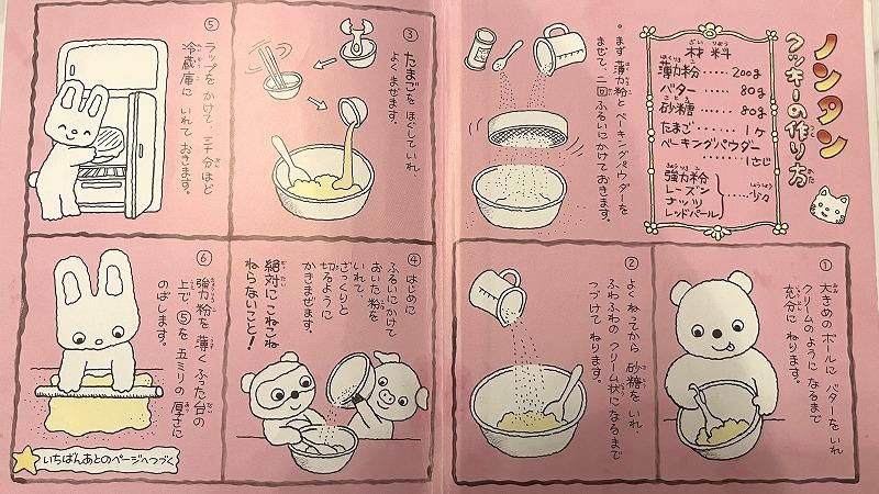 実は絵本の表紙をめくった「見返し」と呼ばれる部分に、『ノンタンクッキーの作り方』が紹介されています!