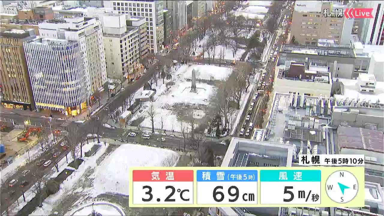 札幌では、ちょうど一週間前は大雪で積雪が1メートルを超えていましたが、この時間は69センチです。
