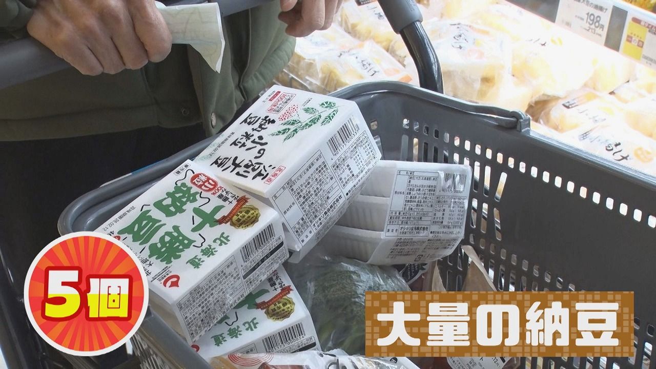 番組スタッフ:「納豆がたくさん入っていて気になったんですけど、これは何個?」河崎さん:「5個。1週間くらいもつかもたないか。まだ4分の1くらいしか買っていない」