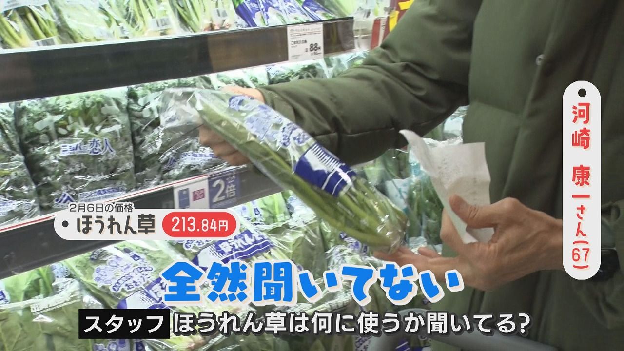 番組スタッフ:「ほうれん草は何に使うかとか聞いていますか?」河崎さん:「全然聞いていない。おひたしか何かに使うのでは」