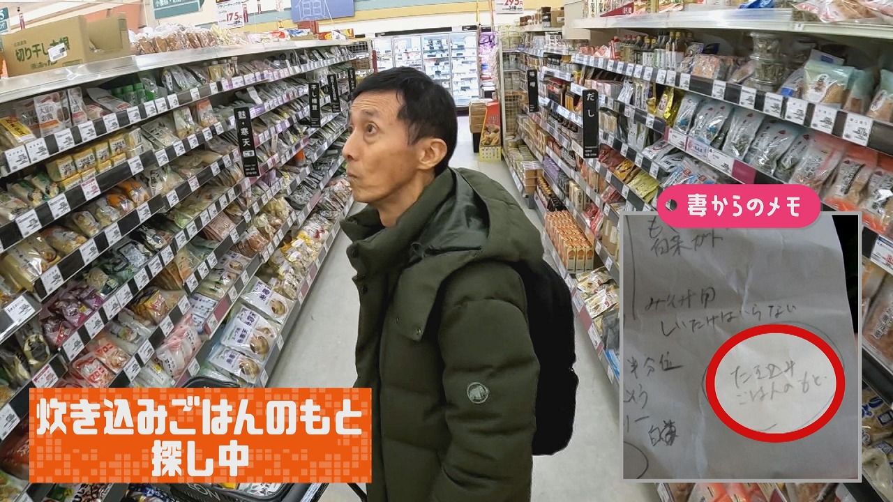 買い物メモに書いてあった「炊き込みご飯の素」を探していますがなかなか見つけることができません。