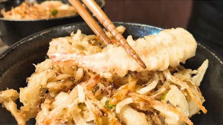 揚げたての天ぷらに…ごはんとおみそ汁、自家製キムチなどの食べ放題が付いてくる!