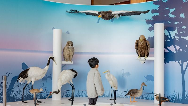ウトナイ湖周辺で見ることができる鳥たちが出迎えてくれます。その種類の多さに、きっとびっくりすることでしょう。