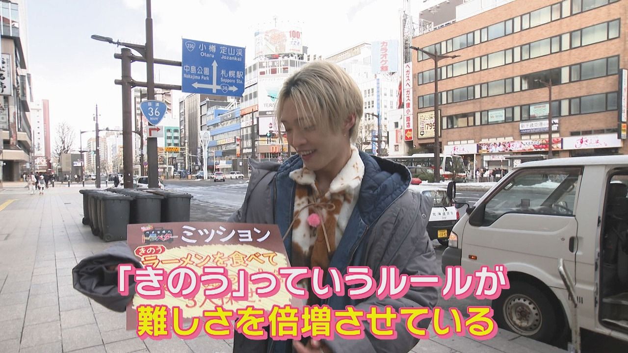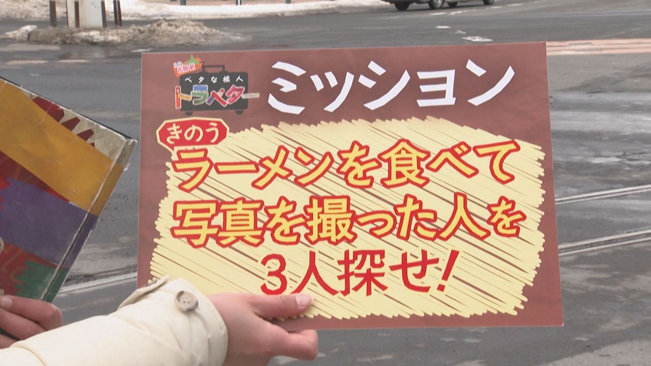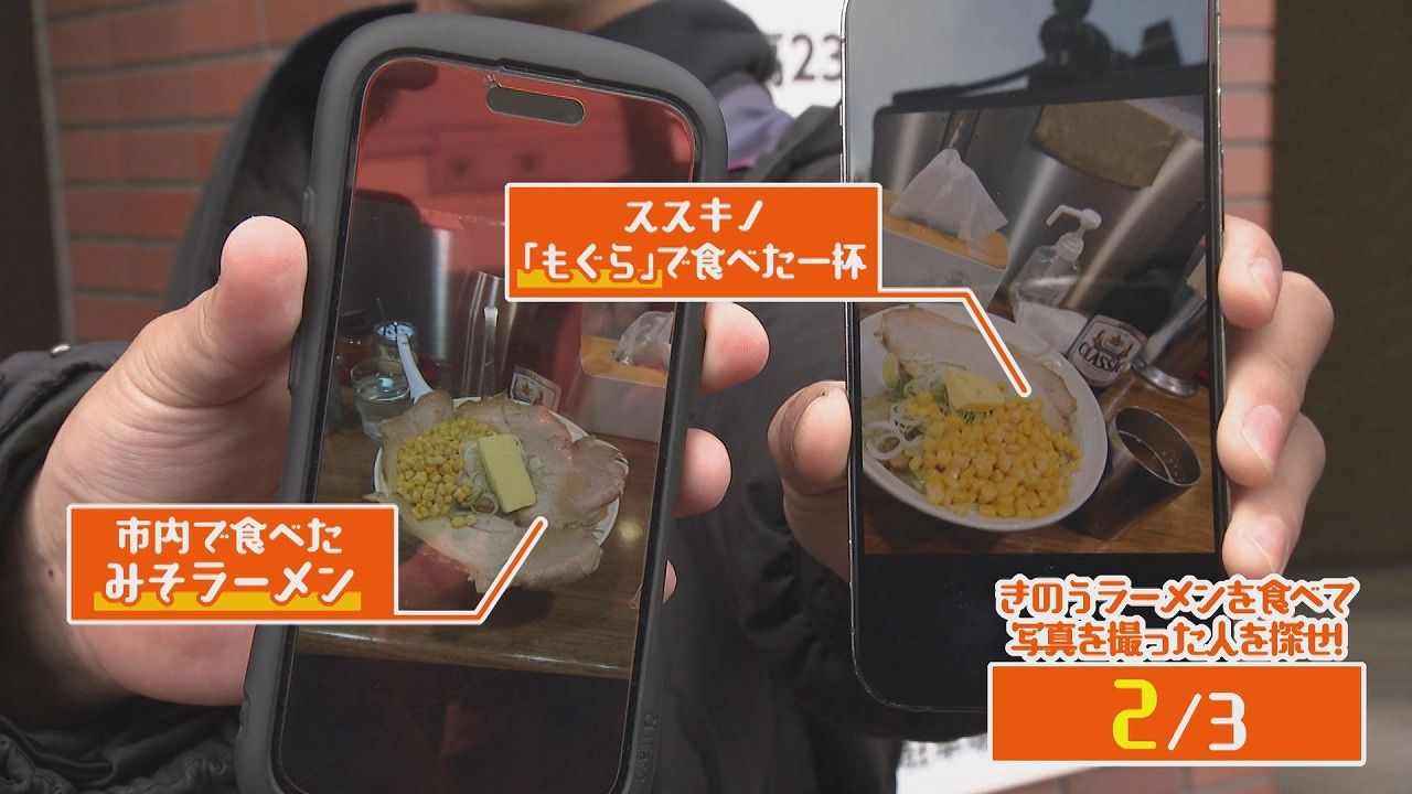 松尾アナ:「きのうラーメンを食べて写真を撮った人を3人探せ!」新くん:「実際写真撮るかなぁ…?」