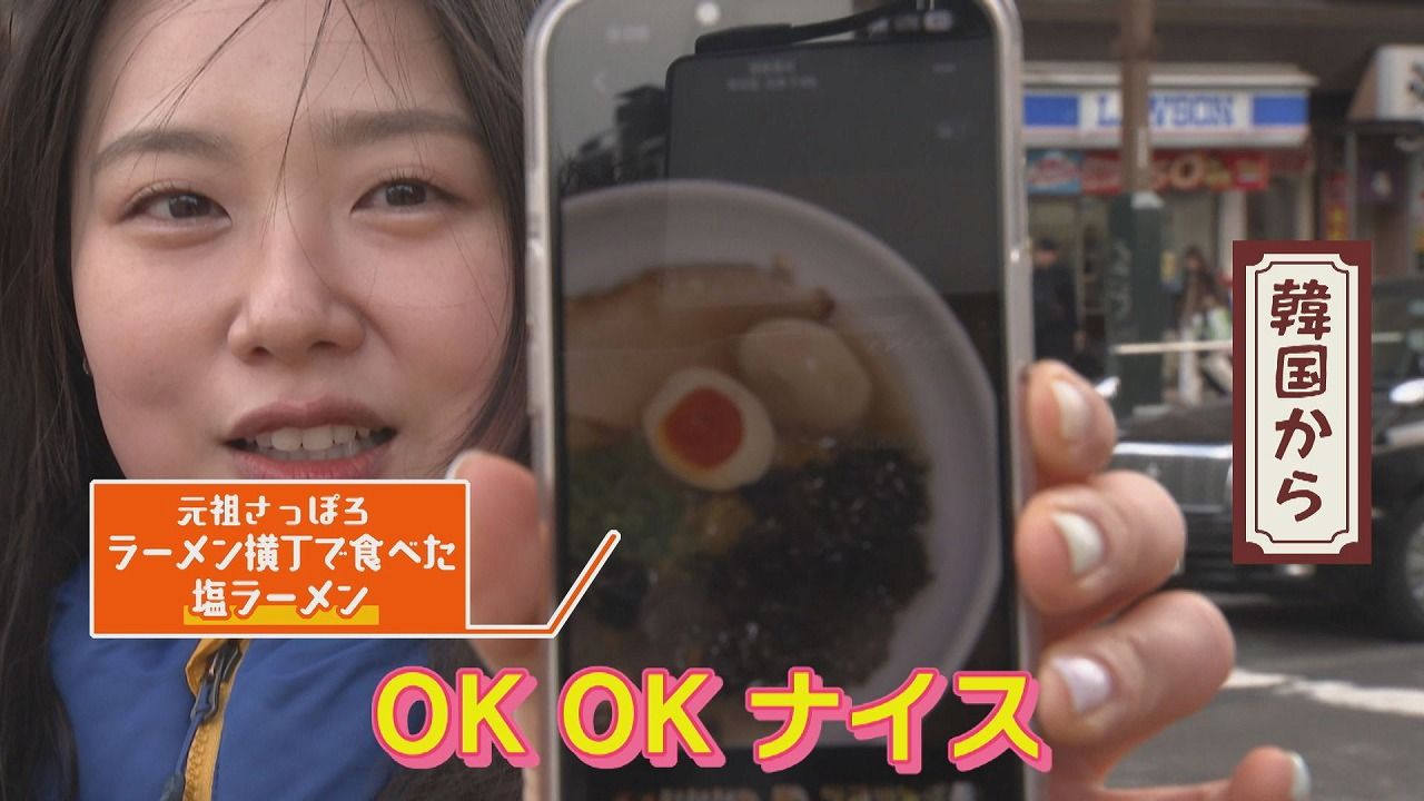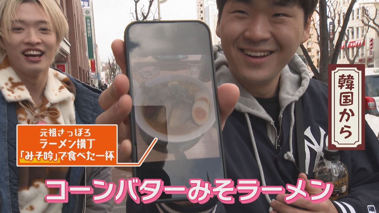 観光客:「コーンバター味噌ラーメン」新くん:「カムサハムニダ」