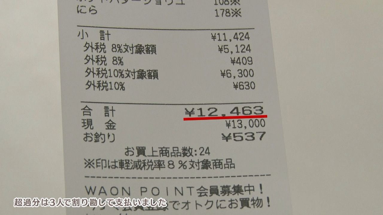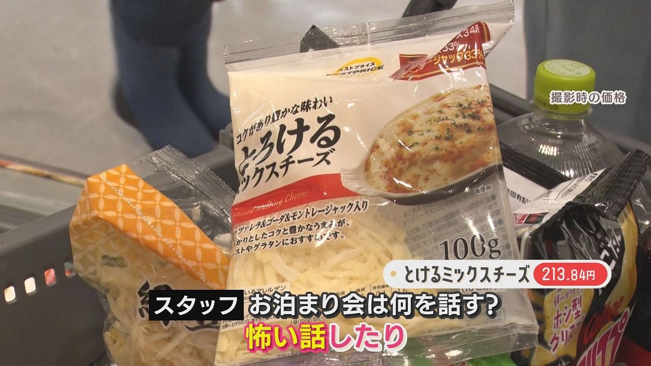 番組スタッフ:「何買ってる?」3人組:「もやしとかお肉。鍋をみんなでする予定」