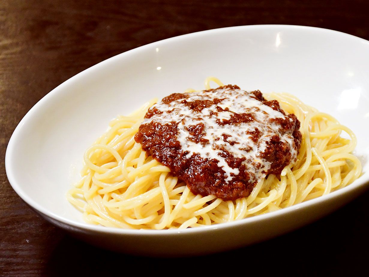 香味野菜や赤ワインと合わせて旨みを引き出した挽き肉に、デミソースやトマトピューレ、香草やバター、蜂蜜などで繊細に味を重ね、煮込み続けること約10時間。その後丸一日寝かせて完成です。