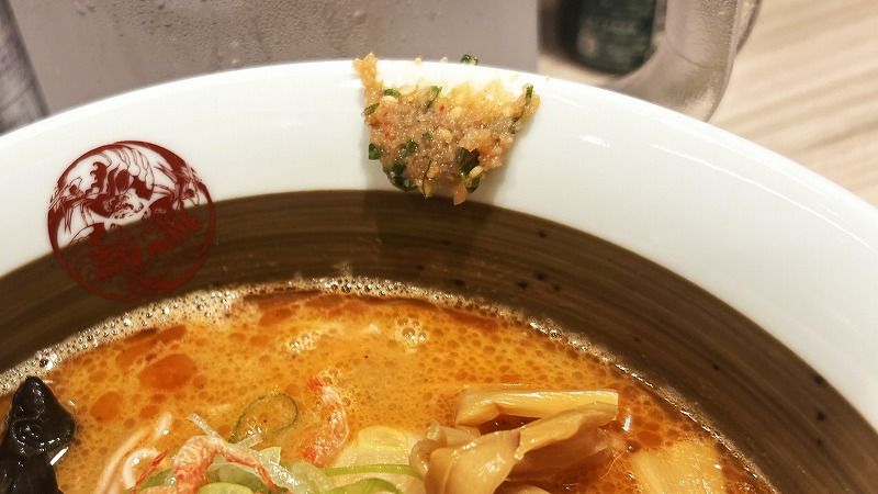このラーメン、エビを使っているのは、スープだけではないのです!