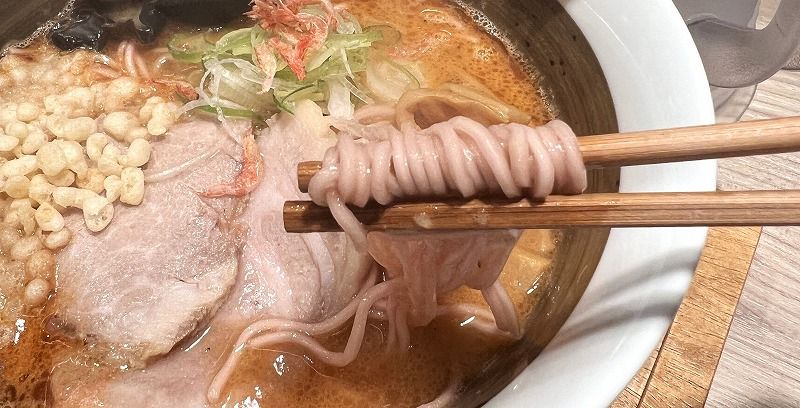十勝の小麦「さらさ」「みのりのちから」を使った麺ですが、実はここに、エビの卵を練り込んでいるという驚き!