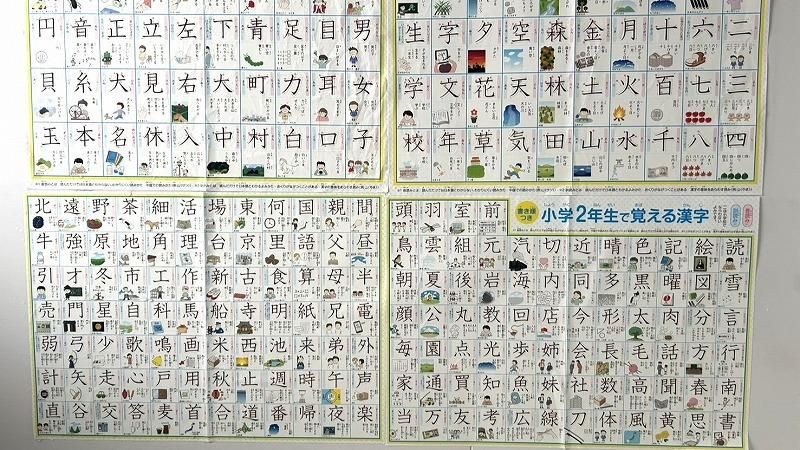 思わず「2年生で習う漢字、こんなにたくさんあるよ!」と言うと、びっくりしながらも、表にぐっと顔を近づけながら、一文字一文字確認するこうちゃん。