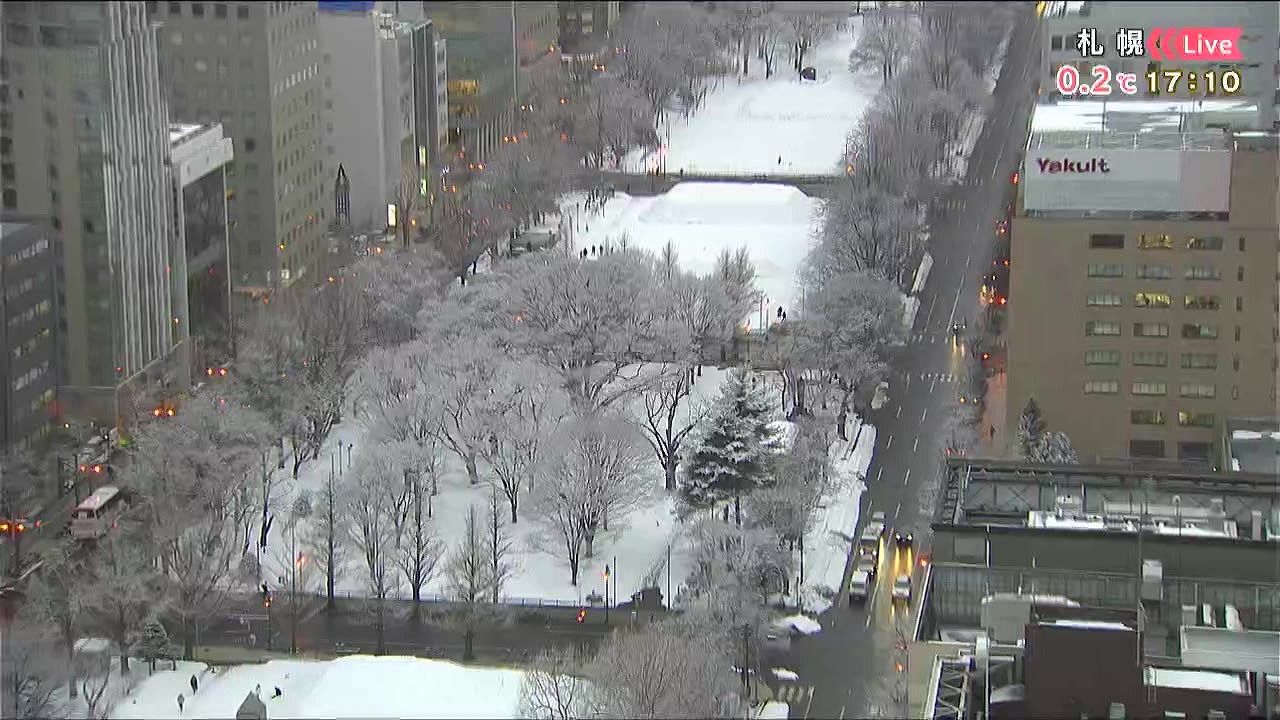画面は、いまの札幌の様子です。午後は雪が強まりました。今夜も雪が降って、うっすら積もるおそれがあります。足元に十分注意して下さい。