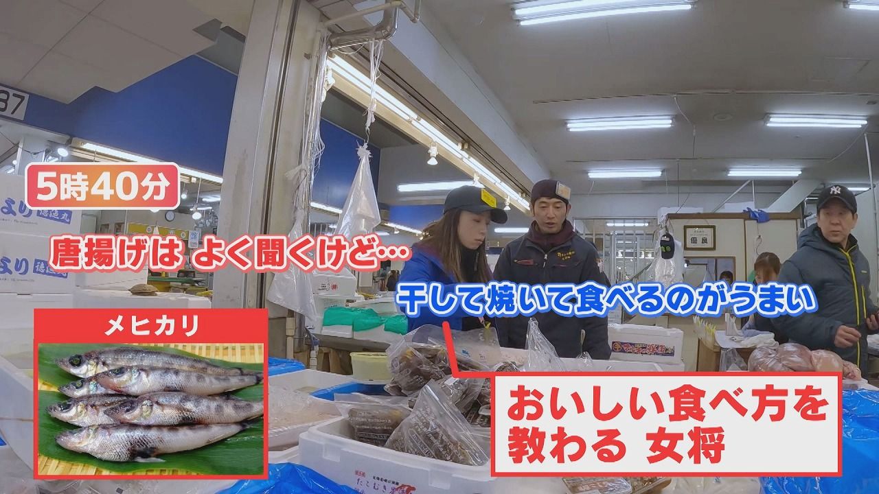 山口さん:「唐揚げはよく聞くけど…」市場スタッフ:「干して焼いて食べるのがうまい。」