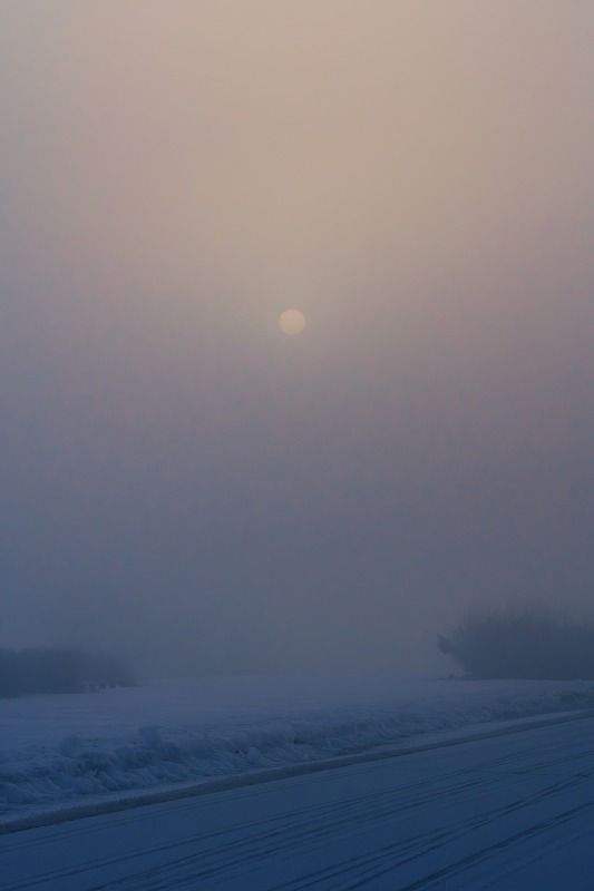 帰りの道中はまだまだ濃霧。その中でも少しづつ景色が朝焼け色に染められ、とてもいい雰囲気。