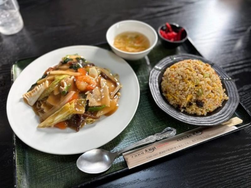 絶妙に絡む餡の香ばしさと、パラパラ炒飯。相性抜群の満腹セット