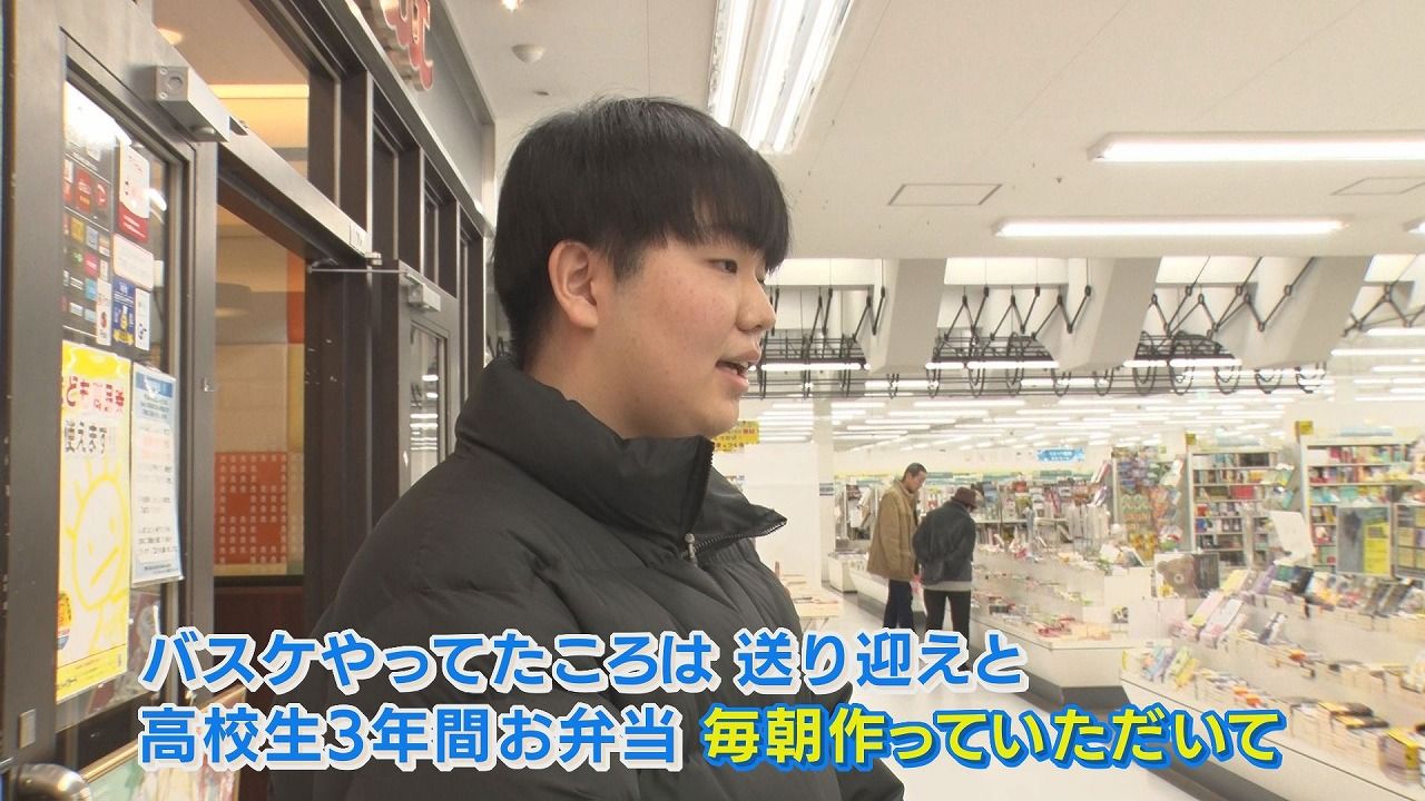 長濱さん:「感謝は、普段恥ずかしくて言えないんですけど、お弁当とかも3年間朝早く作ってもらっていたりするので、そういうのはありがたいって思うんですけど。バスケをやっていたときとかは送迎を休みの日でもやってくれていたりしたので」