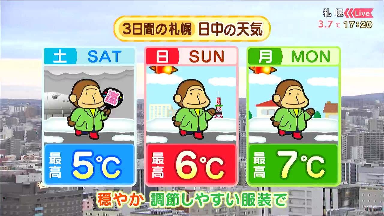3日間の札幌です! 土日月の天気をもんすけでお伝えします!