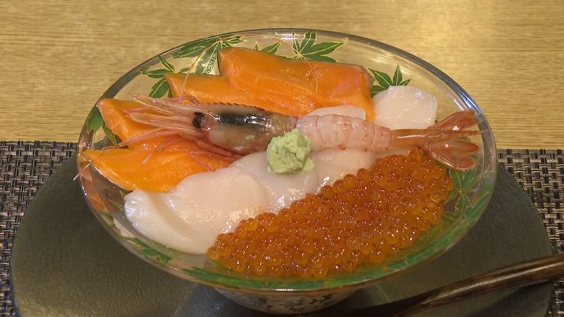 三浦選手は、この店がこだわって漬けた地元・古平産のいくらに注目し、三色丼を注文しました。