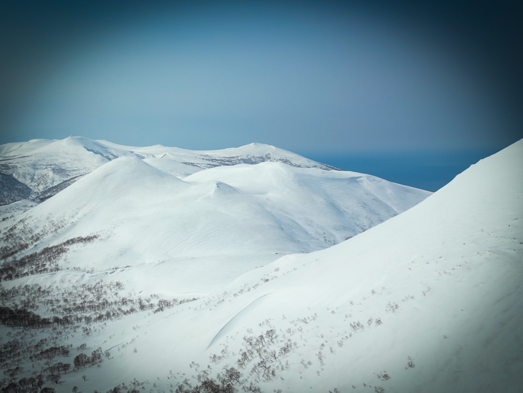 ニセコ連峰の西側、北海道岩内郡共和町にそびえる標高1073メートルの「シャクナゲ岳」は、冬になると山は深い雪に覆われ、やわらかな曲線を描く白い稜線が青空のもとに静かに浮かび上がります。