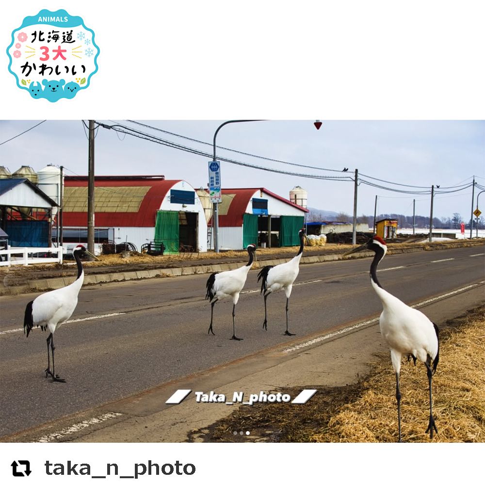 「ニンゲンの暮らしの見学会はこれで終わりだけど、何か質問はあるかな?」なんてお父さんタンチョウの言葉が聞こえてきそうなお写真ですねー。
