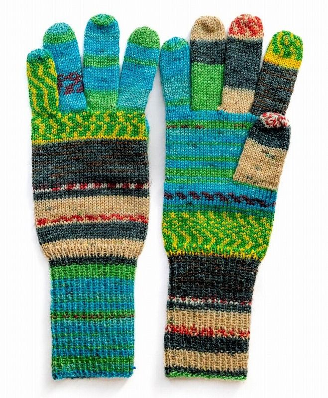 気仙沼FSの毛糸で編んだカラフルな手袋。