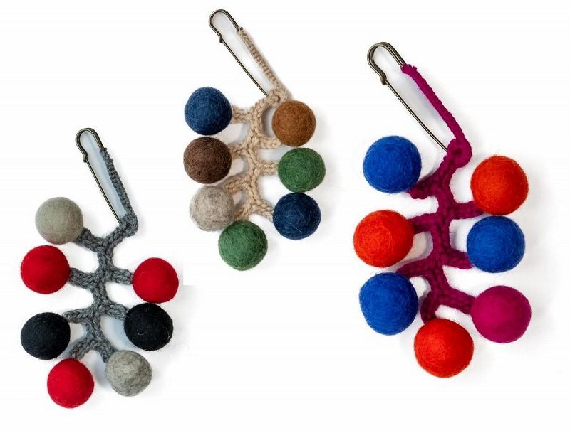 ニット作家としての髙橋さんのアイコンになりつつあるブドウのようなブローチ。